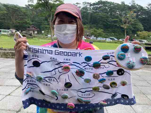 こちらは20からなる霧島連山ごとにいろんな刺繍缶バッチ!ビジターセンター近くにあるお土産屋さんで売ってるそうです。1点モノってことですよね。